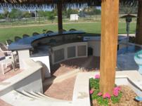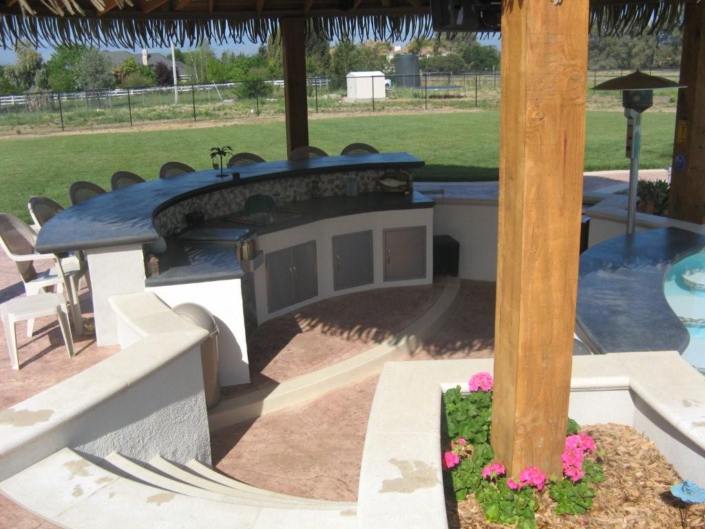 Stamped Concrete Seamlessly Integrated into “Swim-Up” Pool-side Bar and Pergola. |