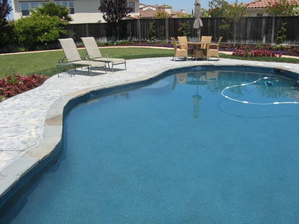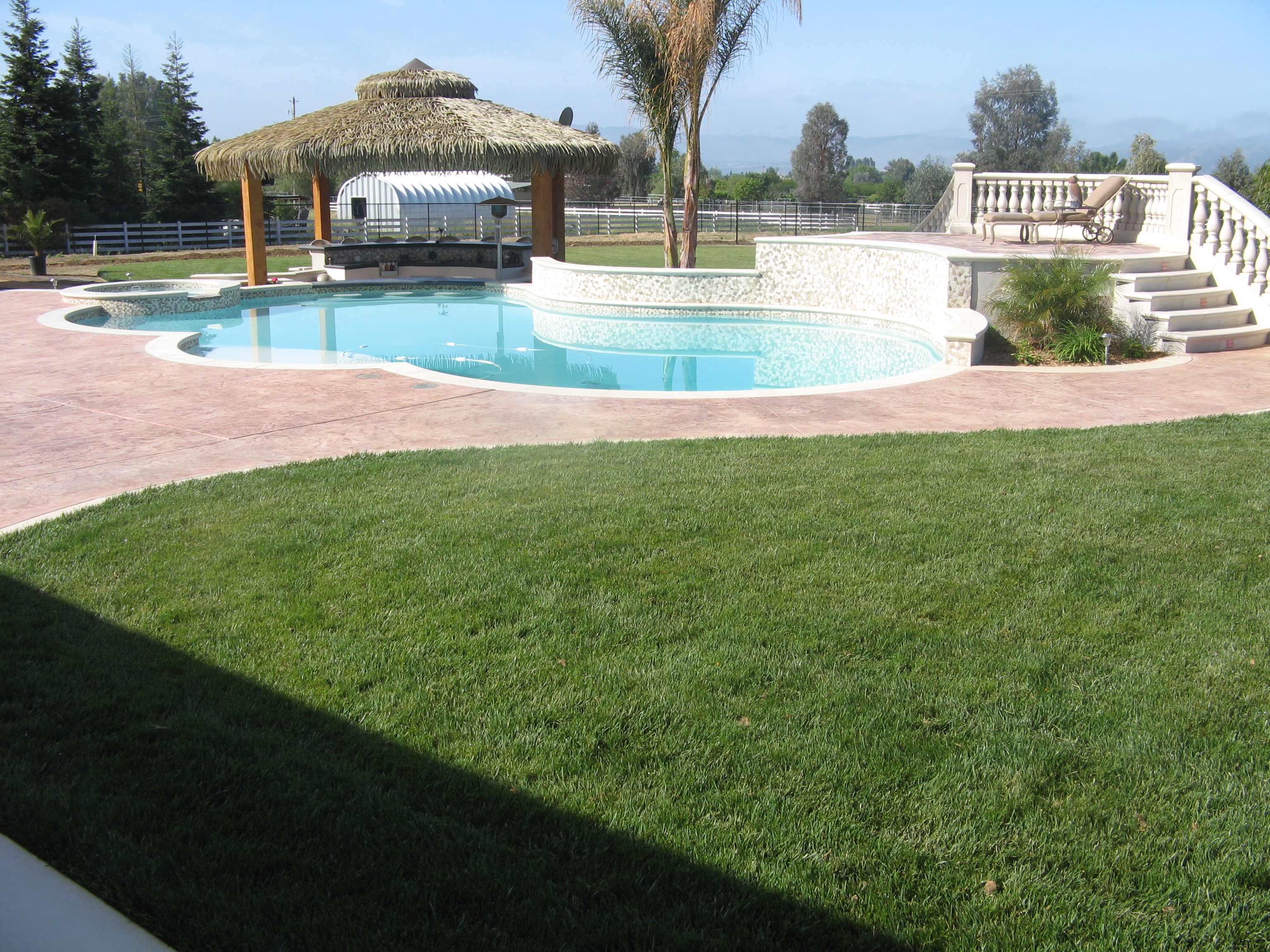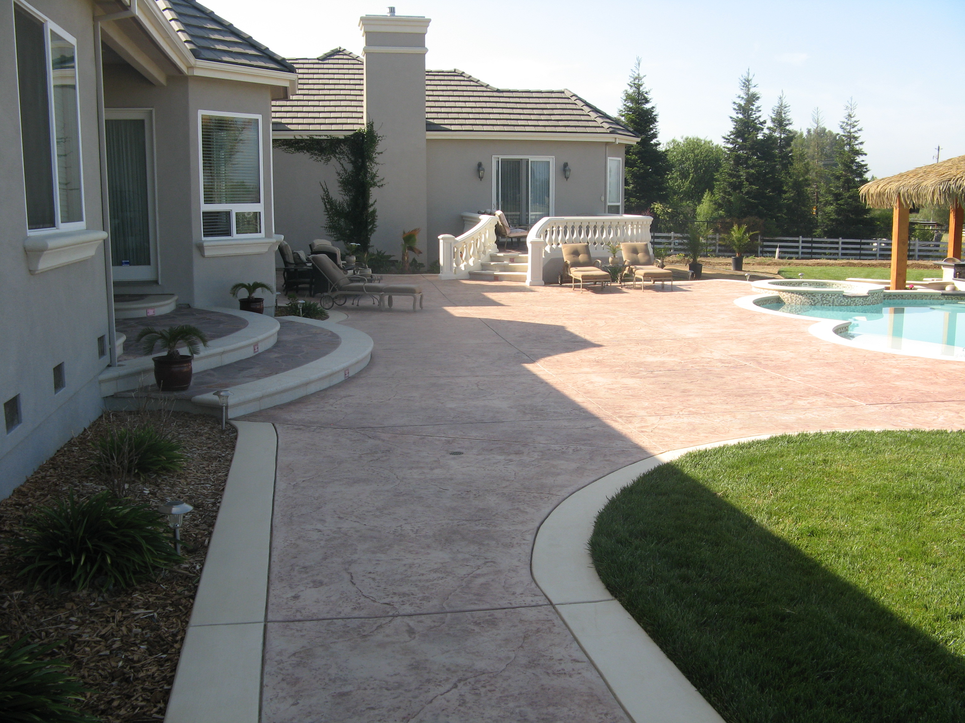 Stamped concrete for a stone finish also assists in traction around the pool |